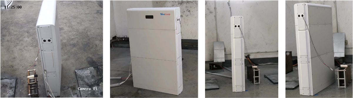 今回の認証試験はトリナ・ストレージの中国江蘇省にある実験室にて実施されました。試験では、「寒冷地次世代住宅用電池システム」内部の単電池に対して強制的に熱暴走※を引き起こし、その単電池が発火に至った場合であっても、蓄電システムケース外に火が露出しないこと、また、蓄電システムケースの開裂がないことを確認しました。